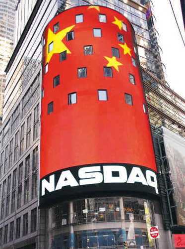 美國(guó)·紐約:紐約時(shí)報(bào)廣場(chǎng)納斯達(dá)克電子顯示屏上循環(huán)顯示中國(guó)五星紅旗,慶祝中國(guó)龍年。 新華社記者 王成云攝