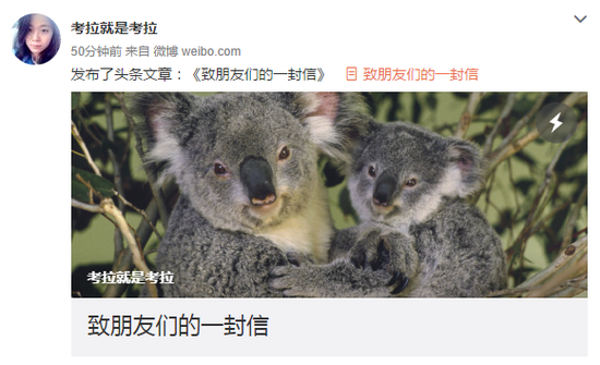 我對自己年輕單純、涉世未深、偏執(zhí)盲目鑄成的大錯感到追悔莫及,并真心悔悟,我愿為我的過錯承擔(dān)責(zé)任,今后我將告別舊我,不負(fù)韶華,給大家展現(xiàn)一個全新的考拉。