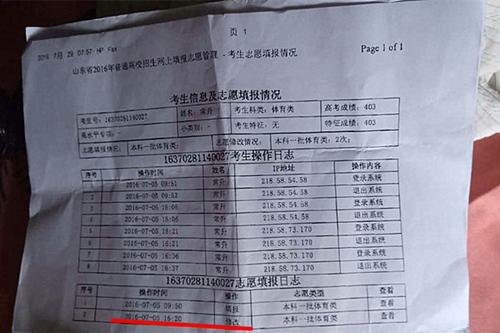 常升告訴半島記者,他10點報的名,下午4點鐘,他的志愿就被修改了,而且還修改了兩次。 這位修改他志愿,故意給他報了一個對文化課分數要求高對體育分數要求不是很高的體育休閑教育專業,而他的成績是文化課不太高而體育分數很高。這樣,他也沒有被魯東大學錄取。對方是壓根就沒有想讓他上大學!