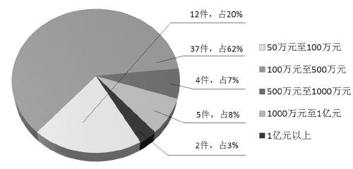 圖二:2012年以來鎮江市“小官巨貪”案件涉案金額情況