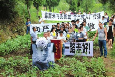 8月7日,廣元市蒼溪縣五龍鎮燈罩村6組,一場特殊的追悼儀式在這里舉行,除了逝者親人外,上百名群眾拉著挽聯,戴著黑紗,自發的來到現場為逝者送行。逝者名叫嚴晨,是一名年僅16歲的少年。7月25日,為營救落水的同伴,他奮不顧身跳入水中,將同伴救起,而自己卻被河水沖走,生命永遠定格在16歲。