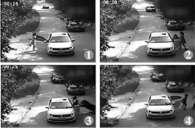 ◎15時00分32秒周某打開左后車門與劉某追至該平臺坡下。