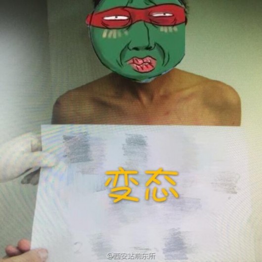 原標(biāo)題:陜西一半裸男廣場猥褻女童被拘,警方配圖稱其“變態(tài)”被贊
