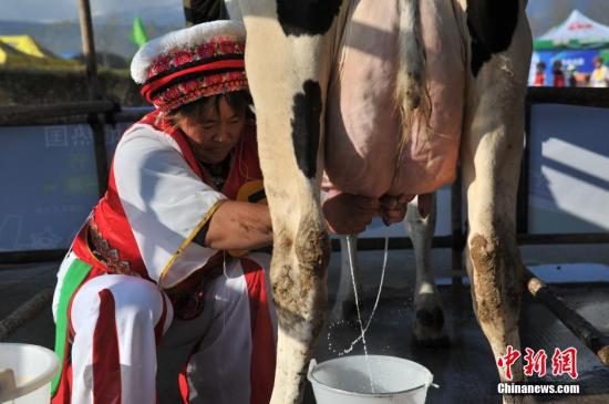 資料圖:奶農(nóng)擠牛奶。中新社發(fā) 任東 攝