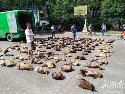 9月17日凌晨,鶴城區林業局與懷化市林業局查獲一起非法運輸野生動物案件。在一輛由西安開往懷化的湖北籍貨車上,共查獲麂子,豬獾,果子貍,毛冠鹿等114只陸生野生動物(三有保護動物)。目前,案件正在進一步調查中。 陳湘清 潘雨 攝影報道