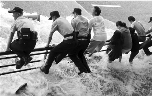 “美女壩的回頭潮,把岸邊人家停的自行車都沖跑了。”