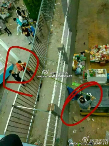 據(jù)@駐馬店生活消息,“自從去年冬天一個(gè)企業(yè)在泌陽(yáng)縣第二高級(jí)中學(xué)蓋起食堂后,該校學(xué)生放學(xué)后自由出入校園、在校外購(gòu)物、就餐的機(jī)會(huì)就被剝奪了。數(shù)千名學(xué)生的校園只保留一個(gè)小賣(mài)部,學(xué)生每日也只準(zhǔn)出入校園一次,且不得帶食物入校。”因不滿學(xué)校食堂的餐品及價(jià)格,許多學(xué)生選擇隔墻購(gòu)買(mǎi)校外的食物。此種校外購(gòu)食物的舉動(dòng),引起了學(xué)校不滿,為了迫使學(xué)生停止與校外商戶交易,校方不僅派老師,近期又花錢(qián)在原院墻外2米處,再焊起一圈鐵柵欄。于是,“長(zhǎng)桿”隔雙墻交易的場(chǎng)景發(fā)生了。