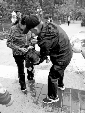 這時,張連祖才意識到自己渾身濕透,“衣服一濕凍得發抖。我一摸兜才發現跳湖前沒把手機掏出來,進水報廢了”。一同練地書的朋友劉先生目睹了整個過程,見孩子沒事,便囑咐張連祖趕快回家換衣服。張連祖走后不久,黃衣女子抱著小孩離開。