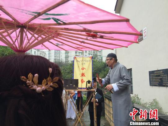 中新網(wǎng)杭州10月22日電(見習(xí)記者 陳麗莎)搭上竹架子,敲響小銅鑼,發(fā)噱的言語,通俗的唱句,小熱昏演員杜傳富正用他一口地道的杭州方言演繹著獨(dú)屬小熱昏的詼諧。在杭州小河直街歷史文化街區(qū)內(nèi),這一唱可吸引了不少圍觀群眾。