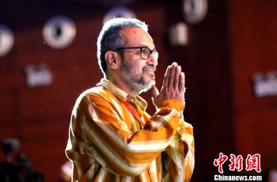 印度詩人墨普德在詩歌節上向觀眾合掌致意。 組委會 攝