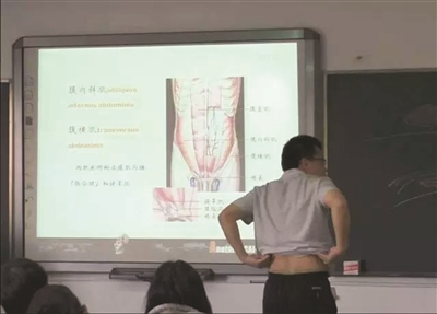 “老師,你知道你火了嗎?網(wǎng)上全是你的解剖動作展示,還有你寫在手臂上的肌肉名稱。”最近,南京醫(yī)科大學(xué)師生“朋友圈”被解剖學(xué)教師李雷的“清涼照片”刷屏。照片中,李雷撩起衣服,以身體為道具向?qū)W生講解各個部位及肌肉名稱。揚子晚報記者聯(lián)系上李雷,他哈哈一笑:“現(xiàn)在最火的是我的學(xué)生紫薇,她的‘蓋世麒麟臂’讓我震驚了!”