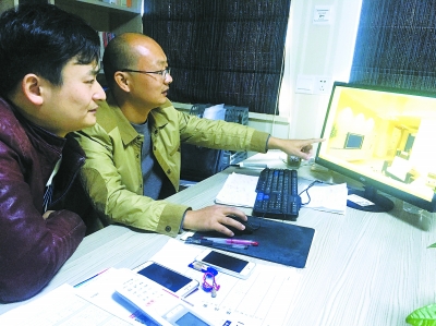 鐘明金(右)和劉向南(左)在討論裝修方案。