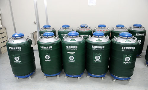 這是2013年11月22日在河南省人類精子庫里拍攝的用于存儲(chǔ)精子的液氮存儲(chǔ)罐。新華社發(fā)
