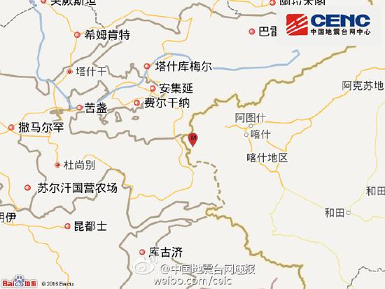 新疆阿克陶縣發生4.0級地震 震源深度6千米(圖)
