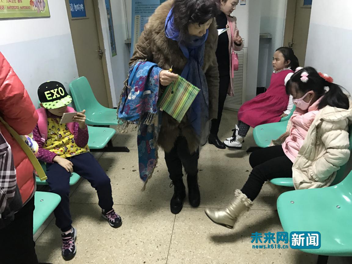 圖為兒科呼吸道科外,家長帶著孩子等待就醫(yī)。未來網記者 韓勝男 攝