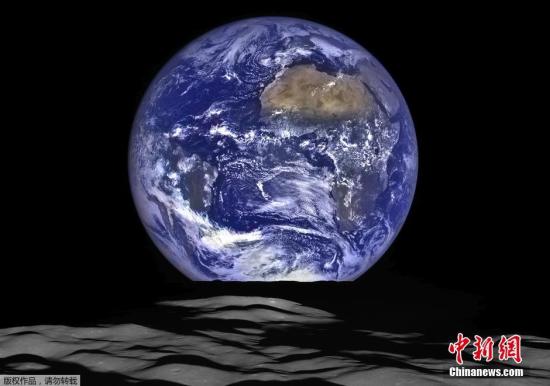 地球右上方大塊褐色地區為撒哈拉沙漠,左側可以清晰看到大西洋和太平洋。在月球上,可以看到火山口康普頓。這一照片是由10月12日拍攝的一系列照片合成的。