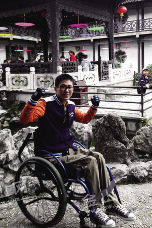 出生于1986年的韋富俊本該和絕大多數(shù)80后一樣,上大學(xué)、找工作、結(jié)婚生子,但是他的人生軌跡在2003年改變了。當(dāng)時(shí)即將參加高考的韋富俊不慎從高處摔下,脊椎損傷造成雙下肢癱瘓!拔覐男∽钕矚g的課程是歷史,夢想就是當(dāng)一名歷史老師,到高三時(shí),成績一直都還不錯(cuò)。可是當(dāng)我清醒的那一刻,我意識到,一直以來的夢想破滅了。”在五鳳口韋家園的家中,韋富俊面對記者的采訪回憶起往事。