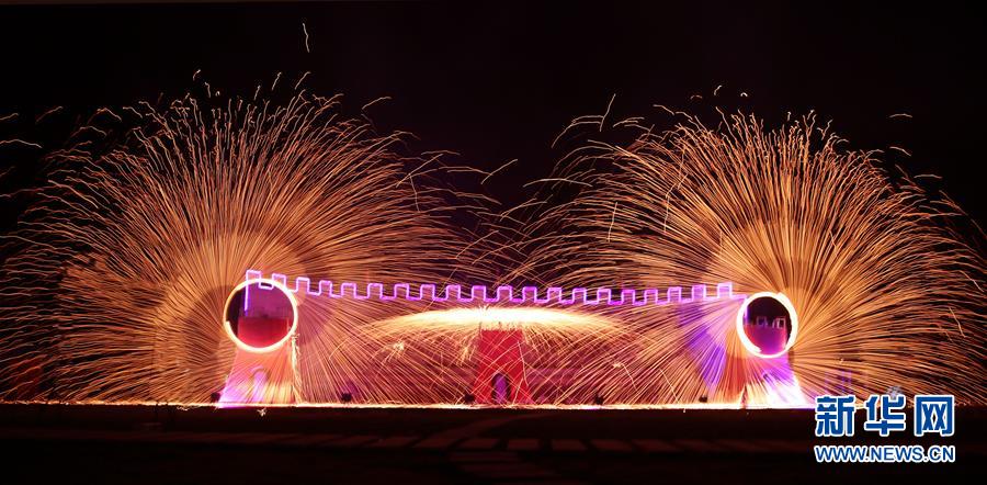 2月2日拍攝的河北磁縣“打鐵花”表演。春節期間,河北磁縣舉辦“打鐵花”表演。“打鐵花”是以小煉鐵爐將生鐵化成鐵水后,用木板將鐵水加鋸末打上天空,在空中形成“鐵花火雨”的景象。新華社記者王曉攝