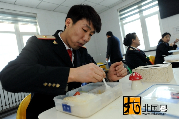 午餐時(shí)間到了,“牛三多”狼吞虎咽地吃完后返回售票崗位。他說,這樣可以讓其他職工多休息一會(huì)兒。