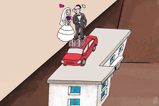 “一動不動”成了安徽某地的結婚“標配”。動的是車子,不動的是房子。結婚彩禮在不少地方出現了水漲船高之勢,演繹了攀比的不良之風。結婚“標配”抬高了結婚的“門檻”,展示了社會的焦慮。婚姻,本是男女雙方你情我愿的結果。穿上了彩禮的套裝,真愛、平等的美好訴求在咄咄逼人的“套裝”面前被擊打得“支離破碎”,折射出了婚姻的無奈底色,呈現了不可承受之“重”。改重為輕,移風易俗是題中之義。此雖非易事,卻應倡導踐行。(王祟行)