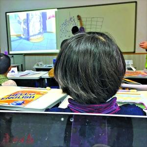 周琪坐在女兒后面,陪她一起在培訓(xùn)機(jī)構(gòu)上奧數(shù)課。
