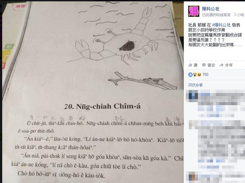 一份驚為“天書”的閩南語(yǔ)作業(yè)(圖片來(lái)源:“爆料公社”Facebook主頁(yè))