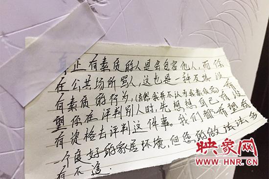 而寵物狗的主人看到留言后,寫了一張紙條回復:真正有素質(zhì)的人是會包容他人,而你在公共場所罵人,這也是一種及其(極其,記者注)沒有素質(zhì)的行為,當然,我并不認為我素質(zhì)高……
