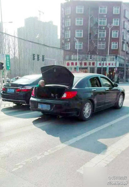鄭州男子讓老母親坐汽車后備箱被曝光(組圖)