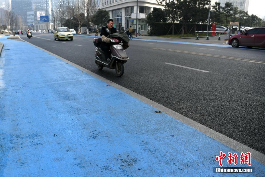 成都街頭現(xiàn)天藍(lán)色非機(jī)動車道