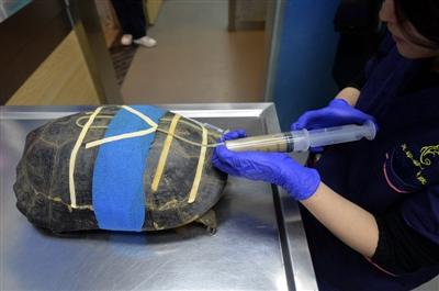 近日,位于城西的一家寵物醫院接收了一位病重的患者——一只年齡在10歲左右的廟龜。此前,其主人張文(化名)曾想法自己救治,但始終不見效果,烏龜精神反而愈加萎靡,春節后才不得不將其送往寵物醫院救治。
