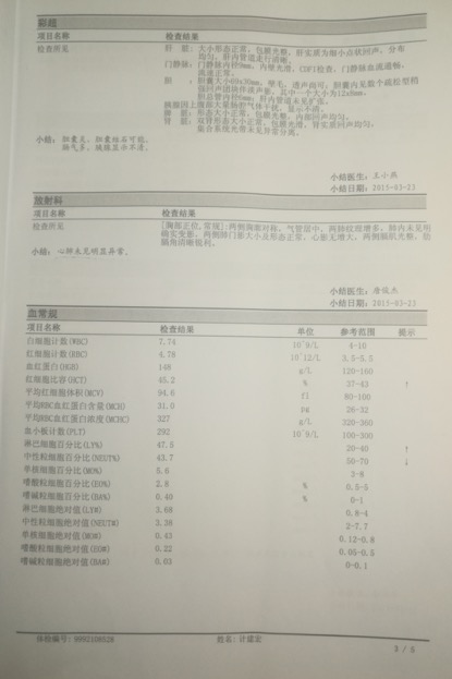 2015年3月,計建宏的體檢報告顯示“心肺未見明顯異常”。 受訪者供圖