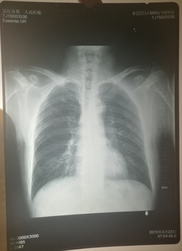 計建宏2015年3月23日在蘇州市吳江區(qū)第一人民醫(yī)院的體檢報告顯示,其放射科檢查的結果小結為“心肺未見明顯異常”。