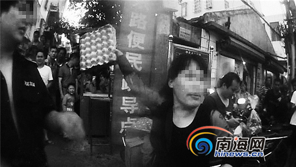原標題:占道經營后 海口女攤販把兩三百枚雞蛋砸向城管