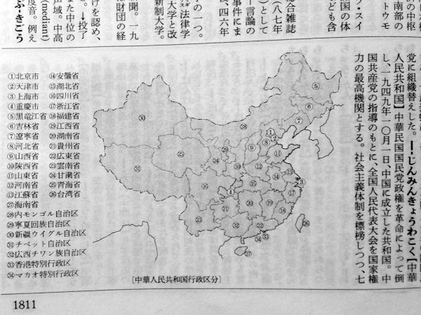 《廣辭苑》中的中國行政區劃圖。