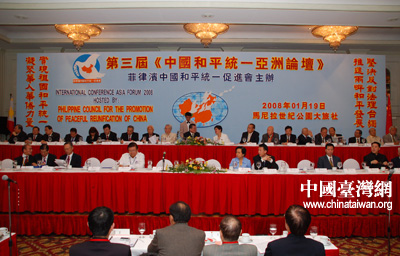 中國臺灣網1月19日馬尼拉消息 由菲律賓中國和平統一促進會主辦的第三屆“中國和平統一亞洲論壇”于今天上午在馬尼拉世紀花園酒店開幕。
