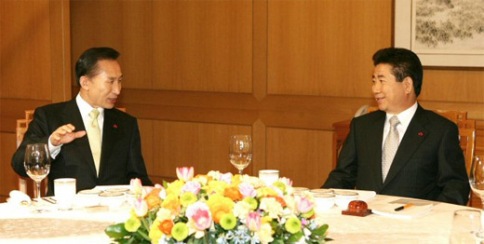 中新網(wǎng)12月29日電 韓國總統(tǒng)盧武鉉和總統(tǒng)當選人李明博于28日晚在青瓦臺共進晚餐,討論了政權(quán)交接問題等國政現(xiàn)案。盧總統(tǒng)和李明博的會面是在總統(tǒng)選舉結(jié)束后第9天。