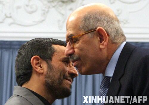1月12日,伊朗總統(tǒng)艾哈邁迪-內(nèi)賈德(左)在首都德黑蘭與到訪的國際原子能機構(gòu)總干事巴拉迪會談前相互致意。巴拉迪11日率代表團抵達德黑蘭對伊朗進行為期兩天的訪問,這是他自2006年4月以來首次訪伊。巴拉迪呼吁伊朗當局在核問題上“加速”同該機構(gòu)的合作步伐,同時希望伊朗的核活動“更加透明”。 新華社/法新
