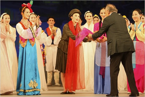 2月25日,朝鮮在萬壽臺藝術劇場舉辦盛大演出歡迎美國紐約愛樂樂團來訪。