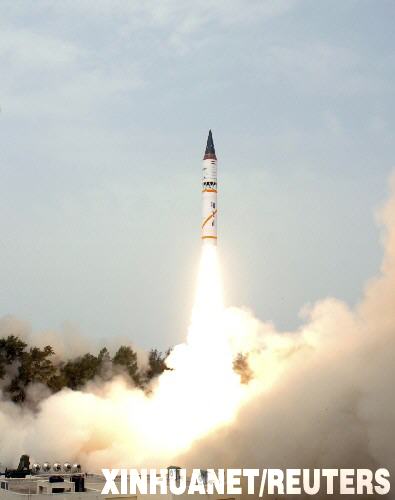 5月7日,印度在東部奧里薩邦附近的惠勒島發射一枚“烈火-3”型導彈。當天,印度成功試射了這枚自行研發的遠程導彈。據印度政府說,它能夠攜帶核彈頭擊中3000公里以外的目標。 新華社/路透