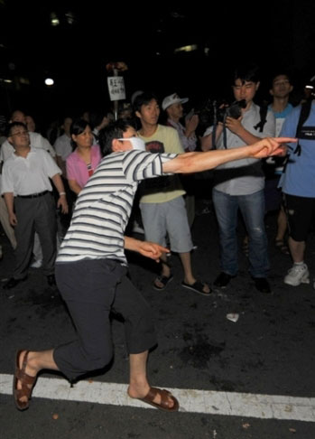 至今一直參與反對重新進(jìn)口美國產(chǎn)牛肉的工會組織等也加入到抗議活動中來,他們向日本大使館投擲了雞蛋,加入到抗議活動中的人數(shù)每天都在增加。