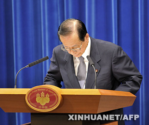 9月1日,日本首相福田康夫在東京舉行的記者招待會上鞠躬。福田康夫在當晚舉行的記者會上宣布辭職。 新華社/法新