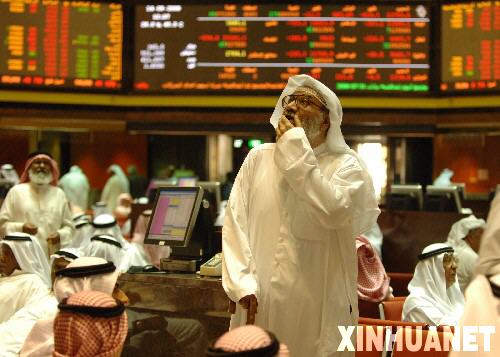 9月15日,在科威特股票交易所,一股民仰頭觀望股票交易價格變化。當天,科威特股市下跌488點,創下了一天內降幅最高紀錄。 新華社發(努法攝)