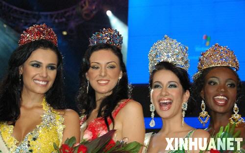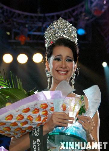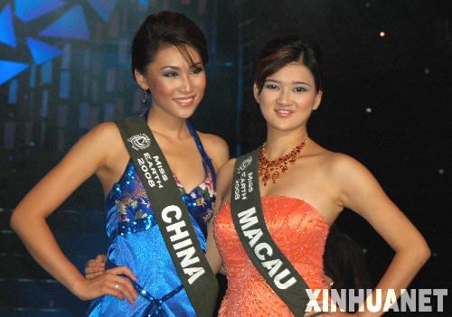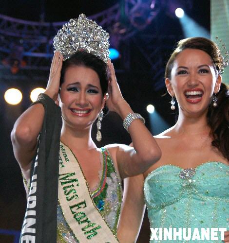 11月9日,在菲律賓北部邦板牙省的天使城舉行的2008年地球小姐決賽上,菲律賓小姐卡拉·亨利奪得冠軍,右為2007年地球小姐杰西卡·特里斯科。當晚,2008年地球小姐決賽在天使城舉行,來自85個國家和地區的佳麗參加了本場比賽,菲律賓小姐卡拉·亨利最終奪冠。 新華社記者劉華攝