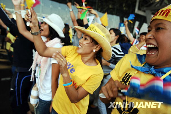 12月3日,泰國(guó)反政府的人民民主聯(lián)盟(民盟)支持者在曼谷素萬(wàn)那普國(guó)際機(jī)場(chǎng)載歌載舞。當(dāng)天,民盟結(jié)束對(duì)總理府和曼谷兩座機(jī)場(chǎng)的占領(lǐng),宣稱推翻頌猜政府的目的已經(jīng)達(dá)到,所有反政府集會(huì)全部停止。新華社記者凌朔攝