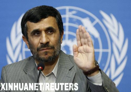 4月20日,在瑞士日內瓦,伊朗總統艾哈邁迪-內賈德出席聯合國德班審議會議。艾哈邁迪-內賈德當日在這里表示,歡迎美國政府作出的改變對伊政策的姿態,但等待美國政策發生“實際的變化”。 新華社/路透