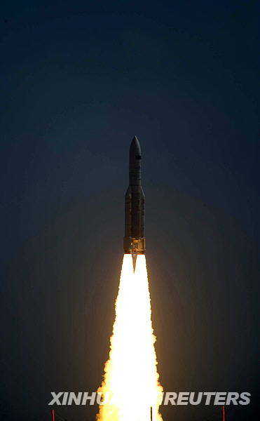 新華網(wǎng)巴黎5月14日電(記者 李學梅)格林尼治時間14日13時12分(北京時間14日21時12分)歐洲阿麗亞娜5-ECA型火箭攜帶歐航局世界最大遠紅外線望遠鏡“赫歇爾”及宇宙輻射探測器“普朗克”,從法屬圭亞那庫魯航天中心發(fā)射升空。
