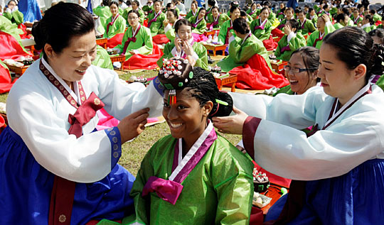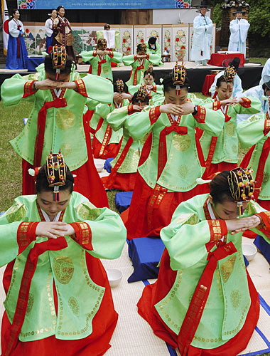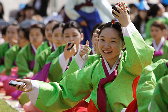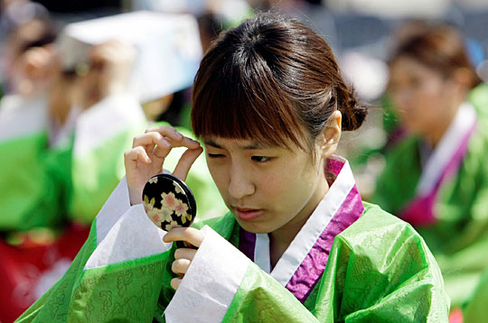 5月18日,韓國首都首爾慶熙宮于17日舉行了第37屆成人儀式。圖為韓國少女舉行成人儀式。