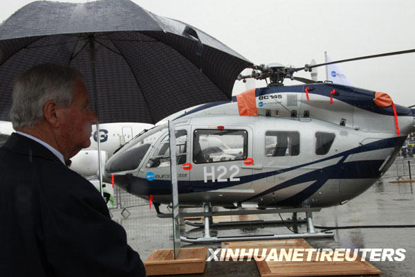 6月15日,在法國巴黎北郊的布爾歇國際展覽中心,人們冒雨參觀第48屆巴黎國際航空航天展。第48屆巴黎國際航空航天展當(dāng)日正式拉開帷幕,并將持續(xù)到21日。作為世界上規(guī)模和影響力最大的航展之一,它已走過了整整100年的歷程。新華社/路透