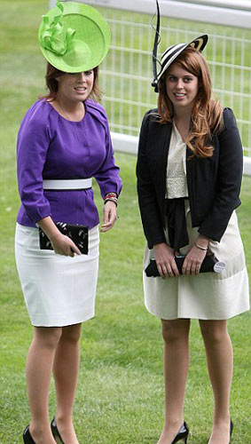 19歲的尤珍妮公主和20歲的比特萊斯公主也齊齊亮相,尤珍妮的綠色大帽子尤為夸張,被媒體稱為像頭上頂著一粒“大豌豆”。相比之下,比特萊斯公主則低調了很多,黑白色相間的帽子很素氣,一根細長的羽毛不露聲色。