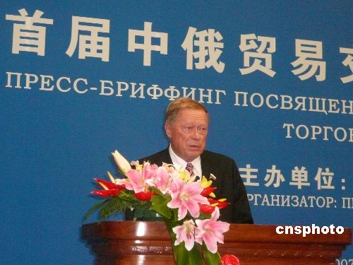 2007年九月三十日,前俄羅斯駐華大使羅高壽在北京出席中國吉林首屆中俄貿(mào)易交易會新聞發(fā)布會并致辭。 中新社發(fā) 董會峰 攝